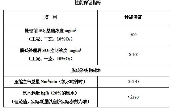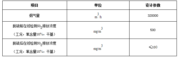本項目為重慶**水泥有限公司2500 t/d新型干法水泥生產(chǎn)線煙氣脫硫工程,具體設(shè)計參數(shù)詳見上述表格。