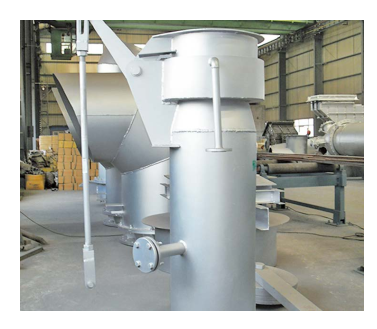 氣體放散裝置設(shè)置在干熄爐頂部的預(yù)存室氣體放散裝置管,在干熄焦投產(chǎn)、停產(chǎn)或發(fā)生緊急情況時,將干熄焦系統(tǒng)內(nèi)的循環(huán)氣體放散;干熄焦正常生產(chǎn)時,處于水封關(guān)閉狀態(tài)。