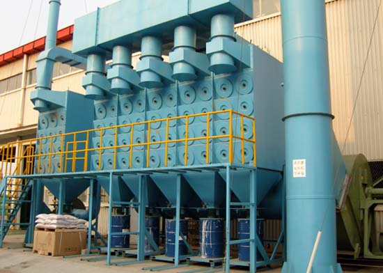 原理:在離心風機的負壓作用下,粉塵從排氣口進入后,通過風管集中后進入粉塵凈化器,在擋風板的作用下,氣流向上流動,流速降低,部分大顆粒粉塵由于慣性力的作用被分離出來落入灰斗。細粉塵進入凈化室,當通過專用粉塵防靜電聚脂纖維濾芯時,粉塵被阻留在濾筒的外表面,凈化后的氣體經(jīng)濾筒口進入上箱體,從風機出風口排出。