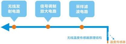 XDCW-410C無線溫度傳感器用于測量高壓帶電物體表面或接點處的溫度,如高壓開關柜內的裸露觸點、母線連接處、戶外刀閘及變壓器等的運行溫度。無線溫度傳感器是由溫度傳感器、信號調理放大、邏輯控制電路、無線調制接口等組成(如下圖所示)。傳感器將采集到的溫度信號通過無線網絡發送到無線式溫度接收主機。