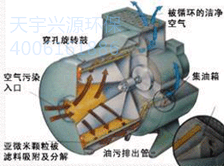 由于蓋和鼓輪的 特設計,具有微小的間隙,確保所有空氣最有效地進入旋轉中的鼓輪。拋棄型濾材使用維護極為方便,濾材一般連續(xù)使用半年至一年,